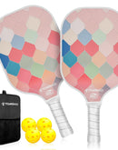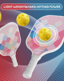 - All in One Pickleball Set: Includes 2 pickleball paddles, 2 outdoor pickle balls, 2 indoor pickle balls, 1 carry bag. Unlike the classic paddle face design, this pink pattern design is eye-catching.