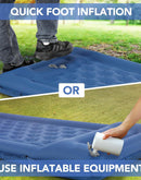 - 【Easy Inflation & Deflation】Easy to inflate by stepping on a built-in foot pump. Just take it out of the drawstring bag, unroll, close the plug under the pillow side, open the valve where the sponge pump is, step or press till full, and close the valve. The self-inflating pump is so convenient when outside, no more blowing up mattresses with mouth or lugging around a separate pump.
