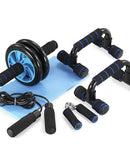 - 【5 IN 1 KIT】 This is 5 in 1 home training equipment that includes adjustable jump rope, hand grabber, push bar up, AB roller with knee pad.