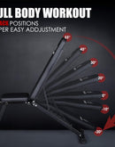 - 【7 Position Weight Bench】 - The back pads can be readjusted into different positions. You can do bench press, incline and decline dumbbell, sit-up and push-up, etc. To work out your muscles in the chest, back, shoulder, abdomen, hip and arms.