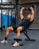 - 【Ergonomic Design】 - Covered with premium leather and padded with thickened cushion with high elasticity and great air permeability, TOMSHOO Weight Bench is wear-resisting and sweat-proof, perfect for long periods of training on your chest, shoulders, back,and more.