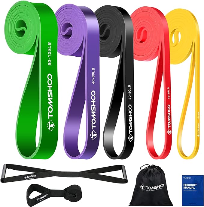 Different Resistance Levels:Fitness bands resistance set with 5 different resistance sizes in long of 208cm and thick of 4.5mm, each loop clearly marked 5-15LB, 15-35LB, 30-60LB, 40-80LB, 50-125LB.