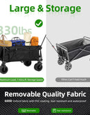 - 【Extra Space Add Convenience】: This wagon cart is foldable with 2 cup holders located, 2 additional storage pockets on the side. Upgraded storage pockets can fit lots of items in it, the largest storage space can reach 210L reducing the need for multiple trips & easy storage of team items.